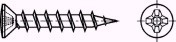 (zápustná hlava, hrubý závit, drážka Philips) 4 drážky pod hlavou |